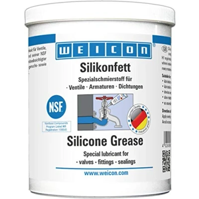Details – The special lubricant is odourless / neutral in taste / has a very good plastic compatibility / material compatible / transparent. Temperature resistance: the multi-purpose grease is temperature-resistant from -50 °C to +200 °C. The plastic grease is suitable as a lubricant in sensitive areas due to NSF H1 registration. Areas of application: the silicone seal can be used in the food technology / drink industry / sanitary and heating area / pharmaceutical industry / sealing technology. Versatile - The grease is suitable for lubricating plastic / rubber parts / devices / systems / assembly aid for O-rings / complies with KTW guidelines of the German Federal Environmental Office for drinking water contact. WEICON – 100% German quality – The silicone meets the highest quality standards in compliance with physical, safety, toxicological and ecological regulations.