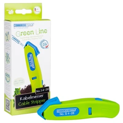 FIELD OF APPLICATION - The cable knife No. S 4-28 is robust, space-saving & strips round and damp room cables with a diameter between 4 - 28 mm. WEICON TOOLS Cable Knife No. S 4-28 Green Line | renewable raw materials | for 4 - 28 mm | incl. retractable hook blade SUSTAINABLE - The stripping tool is not only visually green. It consists of 97 % renewable & natural raw materials with 100 % proven WEICON quality. It is produced CO2 neutral & with green electricity. ADDITIONAL FUNCTION - The inner blade is integrated in the housing in a self-rotating manner and enables automatic changeover from round to longitudinal cut. The wire stripper has a retractable & lockable hook blade. 100 % Made in Germany - Made from resource-saving biopolymer. The durable blades are made of high-quality knife steel from Solingen. The cable knife is TÜV tested in terms of work safety., Weight: 0.18298367746 pounds, Manufacturer: Weicon