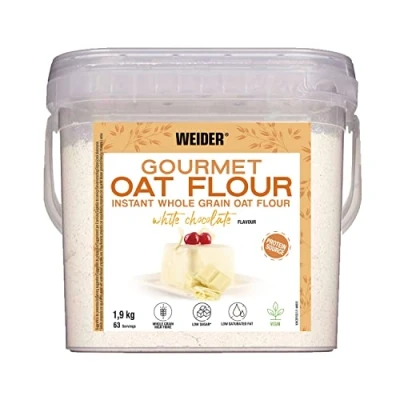 Weider Gourmet Oat Flour (1,9kg) White Chocolate Flavour. Wholegrain, High Protein source. Low Sugar, Saturated Fat. Vegan.