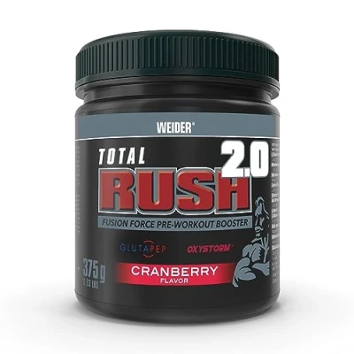 TOTAL RUSH 2.0 by Weider, an international company pioneer and specialised in sports nutrition with over 85 years of experience offering quality and innovation ALL-IN-ONE PRE-WORKOUT: Total Rush has been redesigned to provide a better and more effective and optimized formula, containing Creatine, Amino Acids, Caffeine, Vitamins & Minerals, ... Total Rush 2.0 will take you to new heights, reduce your timings, help you to train more intensely and reach that repetition that makes the difference. It has been specially thought for that last nudge and to avoid that last energy slump you usually feel after training WITH GLUTAMINE PEPTIDES SUSTAMINE + OXYSTORM: Among its active ingredients, the optimised formula of Total Rush also contains new state-of-the-art active substances such as glutamine peptides Sustamine and Oxystorm, amaranth seeds extract that supply nitrates to delay fatigue WITH L-CITRULLINE MALATATE and L-ARGININE: amino acids taking part as precursors of nitric oxide with vasodilator effect, facilitating oxygenation during intense exercising REFRESHING FLAVOURS! Total Rush 2.0 is available in 2 delicious and refreshing flavours, Cranberry and Orange. Take a sip and ready to beat up your performances