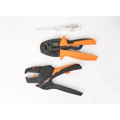 Rely on the professional tools from Weidmüller, an expert in the field of electrical installation, to optimise your work processes and achieve precise results. This cable processing range is specially designed for electrical professionals and offers everything you need for stripping, cutting, crimping and testing cables. Thanks to the included foam insert and the Sortimo L-Boxx, your tools always stay organised and quickly accessible. This automatic stripping and cutting tool is suitable for fine and solid conductors with PVC insulation. The crimping tool for wire end ferrules according to DIN 46228 T. 1 and 4 is a versatile tool for electric professionals., Manufacturer: Weidmüller