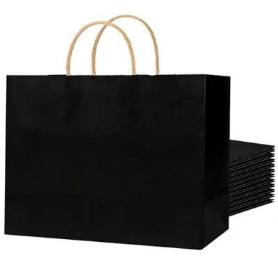 Weifeng 20pcs Gift Bags Large,Paper with Handles,Paper Party bags,Black Paper Bags, Handles(30x23x12cm)