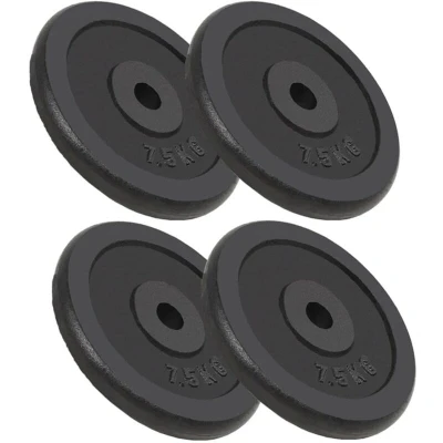 General description This set consists of 4 weight plates that weigh 7.5 kg each. They are perfect for strengthening and shaping your muscles when used with a barbell bar, dumbbell bar, or curl bar with a diameter of 30 mm. Ideal for use at home or in a gym. Technical specifications Colour: Black Material: Cast iron with baked enamel powder-coated finish Plate diameter: 25.3 cm Plate thickness: 3 cm Hole diameter: 30 mm Weight: 4 x 7.5 kg Other information Delivery includes 4 weight plates