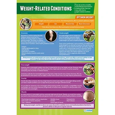 Weight Related Conditions PE Posters Laminated Gloss Paper measuring 850mm x 594mm (A1) Physical Education Charts for the Classroom by Daydream