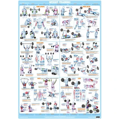 Weight Training Exercise Poster Bodybuilding Chart Whole Body Workout Major Muscle Groups Dumbbells Barbells Lifting Athletics Strength A1 Paper Format