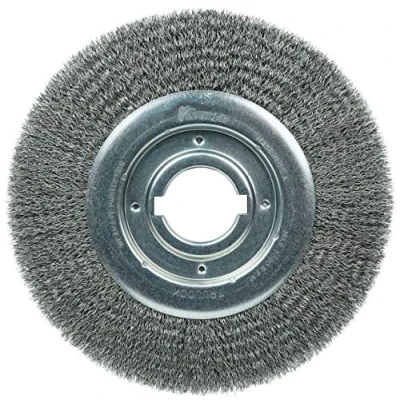 THE TRUSTED BRAND: For straight grinders, stationary bench or pedestal grinders, and buffing lathes UNIFORM BRUSHING ACTION: For light to medium cleaning, deburring, blending, finishing applications LONG LASTING DURABILITY: Has a solid ring construction and reduced wire fatigue and breakage HIGH TENSILE STRENGTH: Steel fill brushes are great for working on carbon steel surfaces MADE IN USA: Brush dia 10 in, trim length 2 in, width 1-1/8 in, wire dia .014 in, arbor size 2