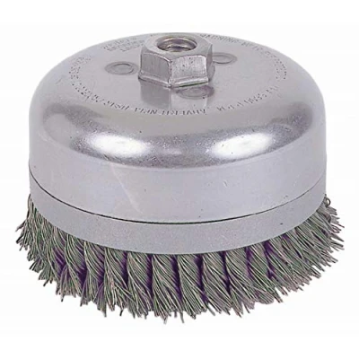 MADE IN THE USA: Weiler Power Cup Bushes are proudly made in the USA at our factory in Cresco, PA ROBUST CONSTRUCTION: Constructed with an internal steel ring to retain the fill material and ensure equal spacing around the perimeter to minimize vibration and extend life INDUSTRIAL GRADE CARBON STEEL WIRE FILL: Featuring heat treated, high tensile steel wire that has been drawn to the most exacting industry standards for superior fatigue resistance and brushing action IDEAL FOR FLEXIBLE CLEANING APPLICATIONS ON LARGE SURFACES: Demanding light to medium duty cleaning including corrosion/oxide removal, rust/paint removal, light deburring. Will not remove base material USE ON RIGHT ANGLE GRINDERS: Fits most standard power angle grinders with 5/8"-11 UNC thread