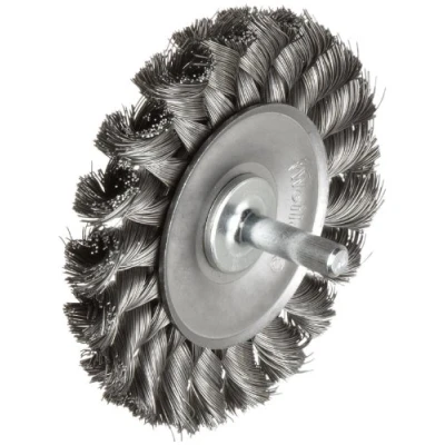 Weiler 17680 0.0118" Wire Size, 3 1/4" Diameter, 3/8" Face Width, Steel Bristles, Stem Mounted Standard Twist Knot Wheel Brush
