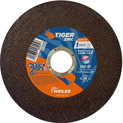 Weiler 58005 4 1/2" x 1mm Tiger ZIRC UltraCut Type 1 Thin Cutting Wheel, Z60T, 7/8" A.H. (Pack of 50)