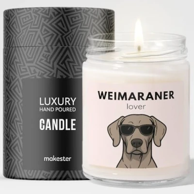Weimaraner Gifts Luxury Soy Wax Candle Vanilla, Jasmine, Sugared Almond Dogs in Shades Makester