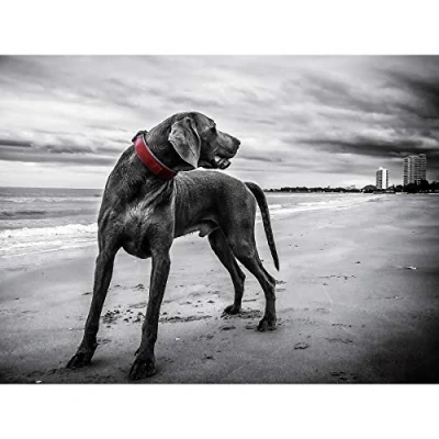 Weimaraner Hund Strand BW Großer Kunstdruck Poster Wanddekoration 45,7 x 61 cm