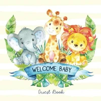 Welcome Baby Guest Book: Safari Jungle Shower Guestbook + BONUS Gift Tracker Log and Keepsake Pages Animals Elephant Giraffe Lion