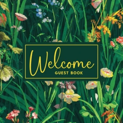 Welcome Guest Book: Visitor Sign in Book for Hotels, B&B, Airbnb, VRBO, Houses, Motels, Cabin, Countryside & Rural Cottages. Green Garden Flowers Design