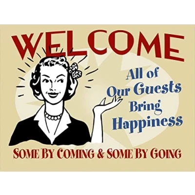 WELCOME GUESTS FUNNY RETRO METAL TIN WALL PLAQUE SIGN NOVELTY GIFT Home bar shed man cave (150MM X 200MM (6" 8")