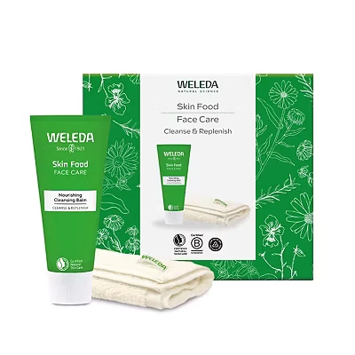 Weleda Skin Food Face Care Gift Set, 2in1 Set Cleansing Balm, Daily Ritual Card & Wash Cloth, for Women Men, 100% Certified Natural, Organic