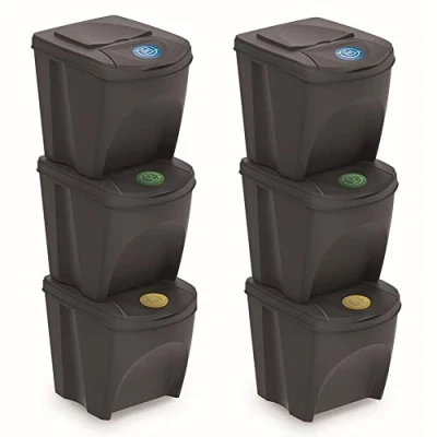 WELL HOME MOBILIARIO & DECORACIÓN 2 Pack of 3 Recycling Bins with Capacity 75 litres Compartment in Black