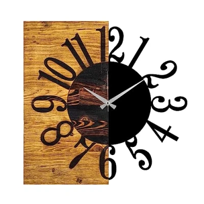 Wall clock WOOD decorative "half and half" 100% WOOD (thickness: 3 cm) / metal Size: 58 x 3 x 58 cm Can be hung on the wall