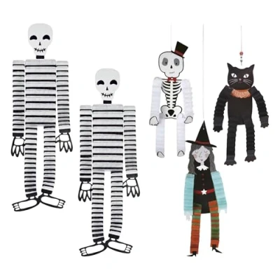 Well Home MOBILIARIO & DECORACIÓN Halloween Decoration: 2 Skeletons + 3 Hanging Figures, Multicoloured, Estándar