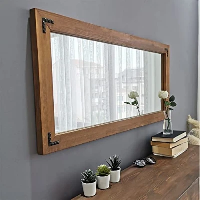WELL HOME MOBILIARIO & DECORACIÓN Mirror, 100% Pine Solid Wood, Walnut