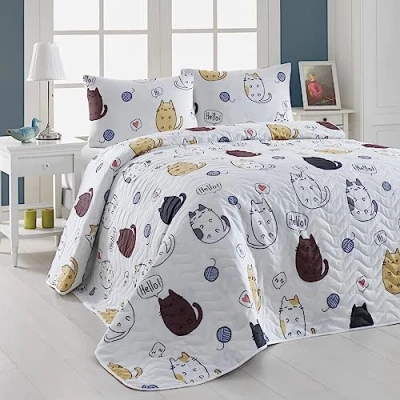 WELL HOME MOBILIARIO & DECORACIÓN Quilt 250 x 200 cm White Brown Grey