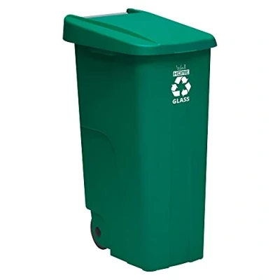 WELL HOME MOBILIARIO & DECORACIÓN Recycle Container 110 litres, Closed with Lid, Ideal for Recycling Glass, Wheels, Green, L