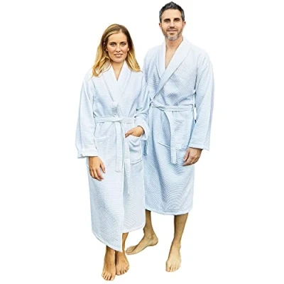 Bee nest bathrobe made from 100 Percent cotton, 360 g/m²; tuxedo collar, with two spacious side pockets and meticulous workmanship; knotted closure with belt made of the same fabric that allows the garment to be comfortably adjusted to the body Reliable product Elegant and timeless design. Made of high-quality cotton for comfort and soft and pleasant feel