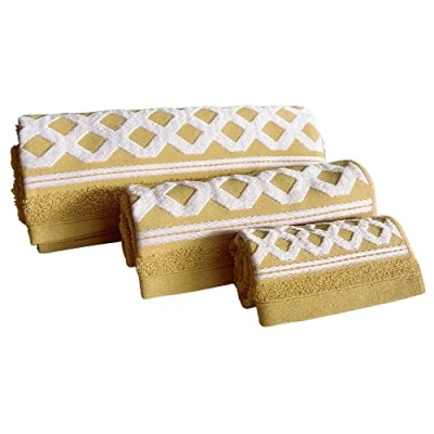 WELL HOME MOBILIARIO & DECORACIÓN Set of 3 Terry Cotton Bath Towels 450 gr/m2, 50 x 30, 100 50, 150 cm, Diamond Collection Mustard