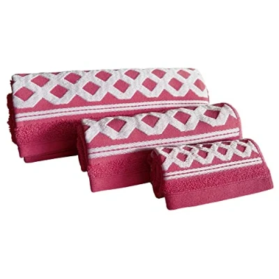 WELL HOME MOBILIARIO & DECORACIÓN Set of 3 Terry Cotton Bath Towels 450 gr/m2, 50 x 30, 100 50, 150 cm, Fuchsia Diamond Collection