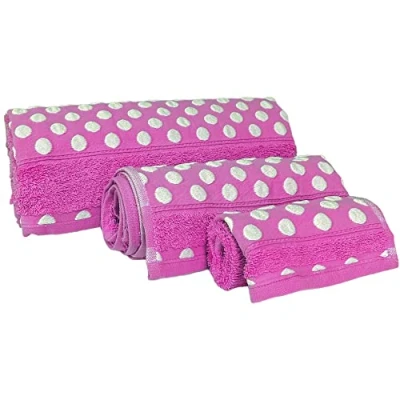 WELL HOME MOBILIARIO & DECORACIÓN Set of 3 Terry Cotton Bath Towels 450 gr/m2, 50 x 30, 100 50, 150 cm, Fuchsia Topaz Collection