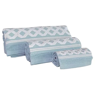 WELL HOME MOBILIARIO & DECORACIÓN Set of 3 Terry Cotton Bath Towels 450 gr/m2, 50 x 30, 100 50, 150 cm, Medium Blue Diamond Collection