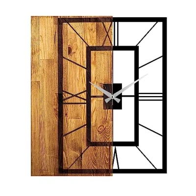 Wall clock WOOD decorative square 100% WOOD (thickness: 3 cm) / metal (thickness: 1.5 mm) Size: 49 x 3 x 58 cm Can be hung on the wall