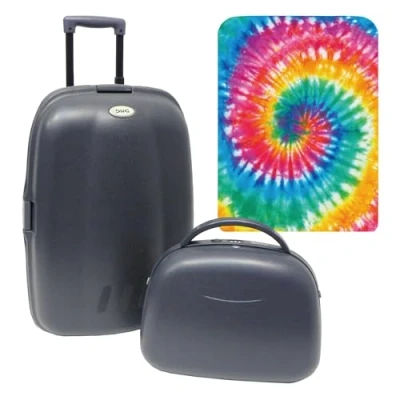 The trolley suitcase set with toiletry bag is perfect for your travel, with telescopic handle and wheels for convenience. Made from durable ABS material with full dark grey interior finish. The dimensions of the trolley are 55 x 35 x 25 cm, and the bag is 30 x 25 x 15 cm. Features an agile and sturdy design, ideal for all your travels. In addition, it includes a fun and personalized protective sleeve to identify and protect your luggage.