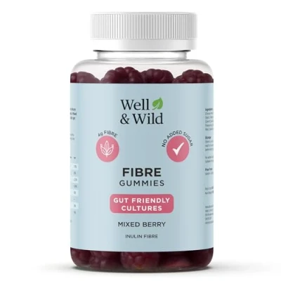 Well & Wild Fibre Gummies 4g Inulin + Live Cultures Vegan Gut Health Support No Added Sugar Mixed Berry Flavour 60 (30 Day Supply)