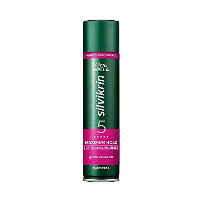 Wella Silvikrin Maximum Hold Hairspray (250ml) offers up to 48 hours of maximum hold with a lightweight, non-sticky formula enriched with anti-frizz complex and jojoba oil. It provides UV protection, smooths flyaways, and brushes out easily for flexible, natural-looking styles.