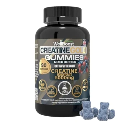 WellBoost Creatine MAX 5000mg Monohydrate + 600mg BCAAs Vegan, Sugar Free Gummies for Lean Muscle Growth, Endurance, Recovery & Energy (90 Gummies, Mixed Berry Gummies)