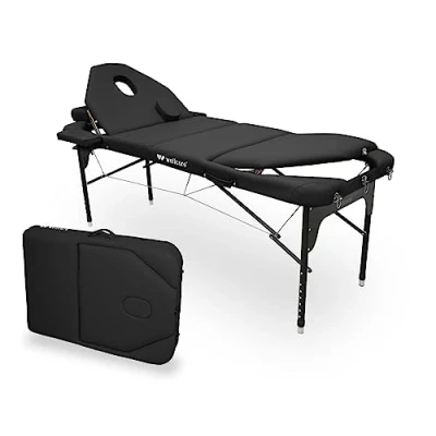 💠The WELLCORE Aluminum Folding Stretcher is the ultimate choice for demanding professionals. Designed to provide comfort and functionality in every session, this high-quality table will surprise you with its double folding backrest and generous size of 185 x 65 cm. 💠With an elegant upholstery in water and oil resistant leatherette, the WELLCORE table guarantees quick and easy cleaning, without compromising its durability. Its black aluminum frame not only gives it a modern and sophisticated look, but also gives it exceptional stability, ensuring your customers feel safe and comfortable throughout the session. 💠For your comfort and that of your customers, this stretcher features an articulated head and a strategically located facial hole, providing the possibility to perform facial and massage treatments with ease and precision. In addition, the lateral arms allow you to perform therapies that require additional support. 💠With a load capacity of up to 225 kg, this stretcher adapts to your needs without compromising on the quality and comfort you deserve. Take advantage of this opportunity and elevate your professional experience to the next level. 💠Includes a carry backpack so you can conveniently take it anywhere. In addition, its 4 rubber studs ensure perfect stability when folded, while the 2 heavy-duty handles make it easy to transport once out of the backpack.