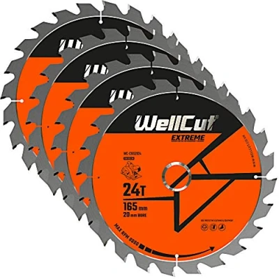 WellCut TCT Saw Blade 165mm x 24T 20mm Bore Suitable For DSS610, DSS611, DCS391, HD18CS Pack of 4