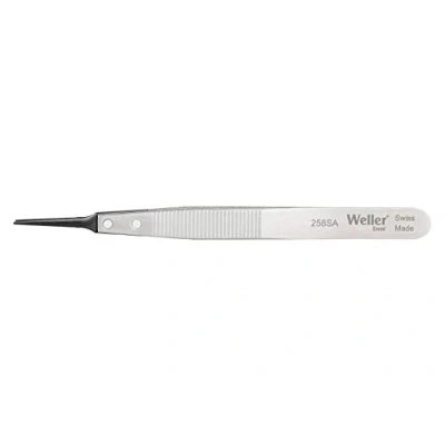 High-precision tweezers Rustproof, non-magnetic steel Synthetic tips (PPS), conducting Heatproof up to 270 °C. Resistant to acids and molten soldering tin (several seconds) Water-repelling, Manufacturer: Weller