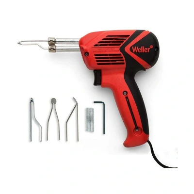 [SOLDER. SMOOTH. CUT.] Soldering Gun Kit comes with 9400 Soldering Gun and 7135 Solder Tip, 6110 Cutting Tip, 6120 Smoothing Tip, Hex Key (for tip replacement), Solder Wire, Storage Case, Operating Manual [6 SECOND HEAT-UP] [BETTER VISIBILITY] Focused bright LED light provides illumination for improved visibility in low-light environments [DUAL POWER TRIGGER] Soldering Gun delivers two levels of power for your soldering task needs, both deliver heat up to 900 °F. When full 140 Watt power is needed, pull the trigger halfway. When medium 100 Watt power is needed, pull the trigger fully [COMFORT GRIP] The co-molded perfect fit pistol grip features a soft, non-slip grip and great ergonomic feel