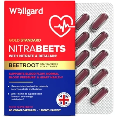 Wellgard Nitrabeets Beetroot Supplement Supporting Normal Blood Pressure, Muscle Function & Heart Health 60 Vegan Capsules