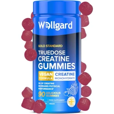 Wellgard Truedose Creatine Gummies Vegan, 3000mg Monohydrate, Increases Physical Performance, 90