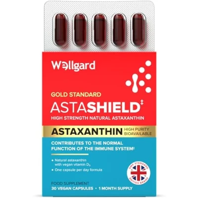 NATURAL ASTAXANTHIN SUPPLEMENT: Wellgard Astashield is formulated with natural astaxanthin, sourced from Haematococcus pluvialis algae. While natural astaxanthin tends to be more bioavailable and comes at a higher cost, we are proud to be one of the few brands that choose natural astaxanthin over synthetic alternatives, ensuring a high quality astaxanthin supplement for optimal wellness. MULTIPLE HEALTH BENEFITS: In addition to astaxanthin, Wellgard Astashield includes Vitamin D₃, which contributes to the normal function of the immune system, maintenance of normal bones, and normal muscle function. With Astashield, you’re getting high absorption natural astaxanthin plus the added health benefits of Vitamin D₃ in a single, convenient vegan capsule. KING OF CAROTENOIDS – Known as the "king of carotenoids," astaxanthin cannot be produced by the body and must be obtained through diet or supplements. Naturally found in algae and certain seafood, Wellgard Astashield delivers this rare compound in its purest, plant-based form for exceptional quality. SIMPLE & EFFECTIVE: Take just one capsule a day to experience the benefits of both astaxanthin and Vitamin D₃. Each pack provides 30 servings, making it easy to incorporate into your daily wellness routine for consistent support. SUPPLEMENTS WITH INTEGRITY - Wellgard was created to celebrate integrity in its most humble and true form. We only use ingredients that either directly benefit your wellbeing or support the integrity of our formulations. So go ahead and look under the bonnet - we want you to.