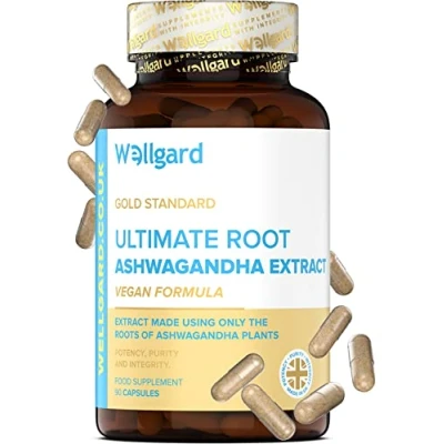 Wellgard Vegan Ashwagandha KSM 66 with 5% Withanolides High Strength Ashwagandha, Full Spectrum Root Powder, Free from Magnesium Stearate & Silicon Dioxide, Made in UK
