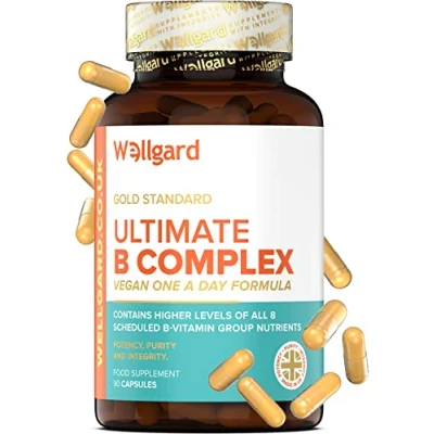 Wellgard Vegan Vitamin B Complex High Strength with B1 (Thiamin), B2 (Riboflavin), Niacin, B6, Folic Acid, B12 and Biotin, 90 Capsules, Made in UK