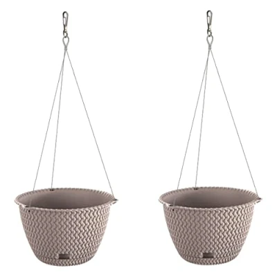 WELLHOME 2 x Round Hanging Planter 3L Splofy Plastic in Mocha Colour, Ø23 14.5 cm
