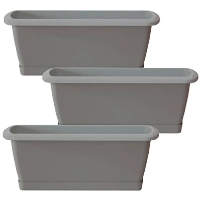 WELLHOME 3X Respana Planter with Plastic Support 78.6 (Length) x 18.4 (Width) 14.5 (Height) cm, Grey Stone
