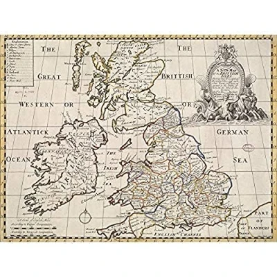 Wells 1719 Map English Britain Ireland Roman Empire Art Print Canvas Premium Wall Decor Poster Mural
