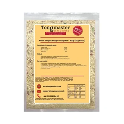 This burger seasoning is loaded with welsh leeks and a hint of crushed chillies. Use 500g mix per 4kg minced meat, includes rusk. This will make 5kg of burgers. Use with beef, chicken, pork, lamb or alternative! Simply add this seasoning to minced meat & water. Shape the burgers by hand or use a press for a professional look! The colder the meat and water, the better the appearance and life of the burger. Leave burgers in the fridge overnight to allow the herbs and spices to marinade with the meat Dont forget to use burger discs between your burgers before they are frozen allowing you to easily separate the burgers.