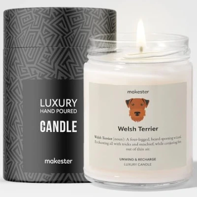 Welsh Terrier Candle Over 100+ Breeds 220g Soy Wax Madagascan Vanilla & Jasmine Gift Dog Lover Candles by Makester