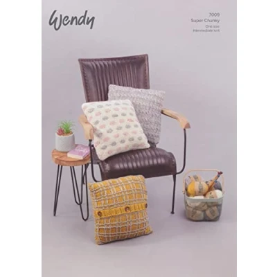 Wendy Super Chunky Knitting Pattern for Mock Tartan Spot or Cable Knit Cushion (7009)